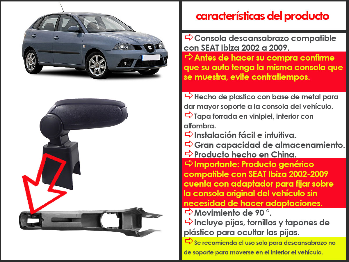 - Compatible con SEAT Ibiza 2002 a 2009 (NO EN OTROS MODELOS/AÑOS/MARCAS).