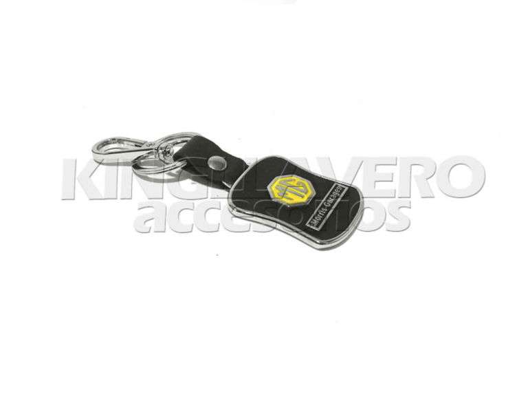 LLAVERO DE ALUMINIO DE ZINC PULIDO CON PIEL 100% GENUINA.