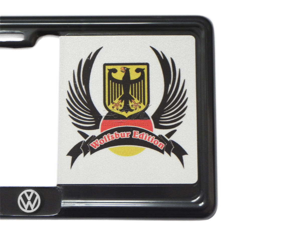 - IMAGEN: D PLACA UNION EUROPEA CON BANDERA ALAMANA Y ESCUDO WOLFSBURG EDITION HERALDICO.