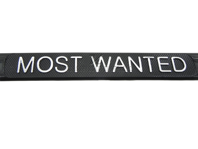 LETRAS EN RELIEVE PARTE SUPERIOR: “MOST WANTED” COLOR CROMO.