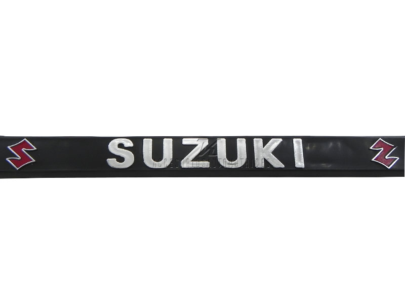 LOGO Y LETRAS EN RELIEVE COLOR CROMO, FONDO ROJO EN VINIL AUTOADHERIBLE.
