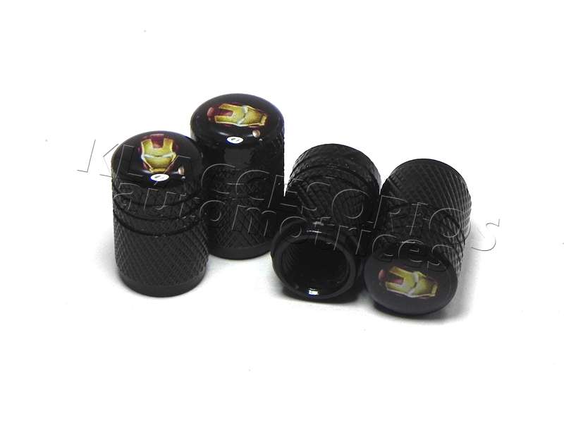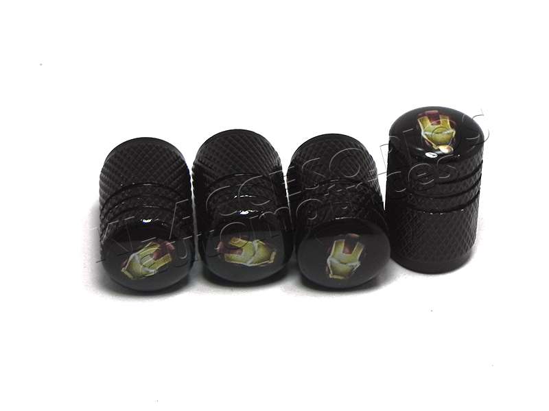 JUEGO DE TAPAS AIRE LLANTA, IRON MAN, ALUMINIO NEGRO, UNIVERSALES
